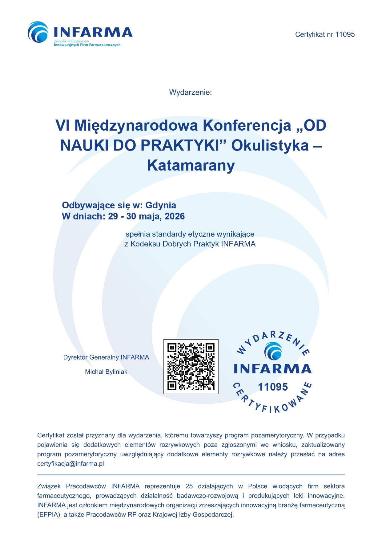 Zapraszamy do „miasta z morza i marzeń” – Gdyni, tutaj w dniach 29-30 maja 2026 roku odbędzie się już VI Międzynarodowa Konferencja „OD NAUKI DO PRAKTYKI” Okulistyka – Katamarany. Podobnie jak na konferencjach, które organizowaliśmy w minionych latach, i tym razem najwięcej czasu poświęcimy najciekawszym przypadkom wybranym z praktyki lekarskiej.